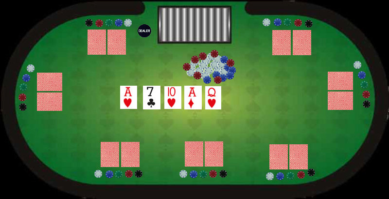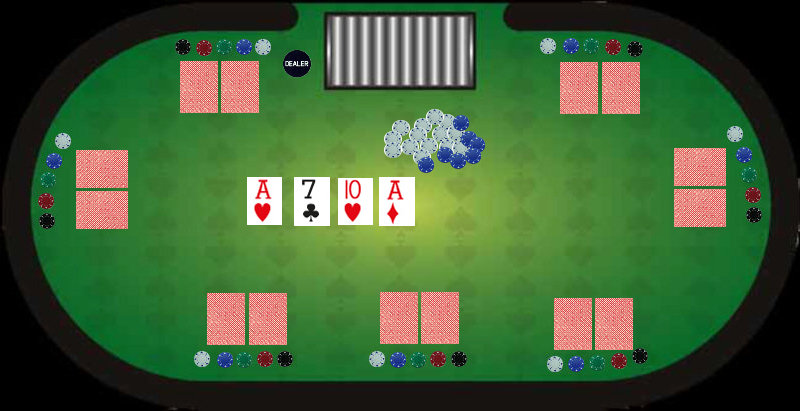 Again starting from the dealers left another round of checking, betting, raising or folding takes place before the final card.